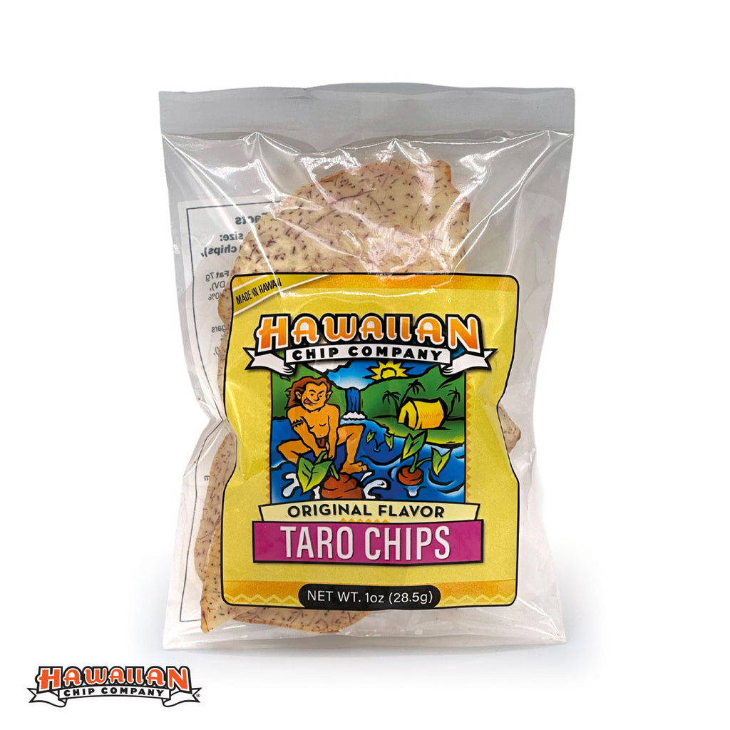 Hand-peeled taro are thinly sliced, cooked until crisp and lightly salted to create the Hawaiian Chip Company Original Flavor Taro Chips.